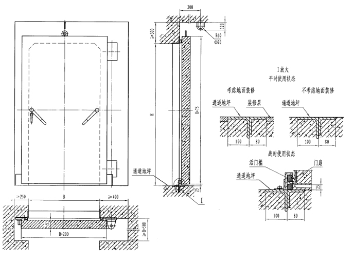 此類門的特點(diǎn)是平時(shí)不設(shè)門檻,地面平整,便于人員或車輛通行:戰(zhàn)時(shí)快速設(shè)置門檻,以滿足防護(hù)、密閉要求。