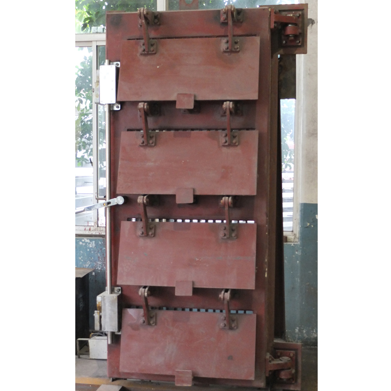 此類懸擺式活門為鋼結構,使用、維護方便,適用于進、排風口和排煙口。其中懸擺式防爆波屏蔽活門是在普通懸擺式防爆活門的基礎上增加了屏蔽功能,其防電磁脈沖能力為II級。