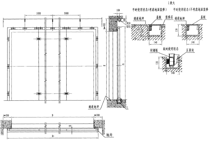 此封堵板可用于封堵平時(shí)使用、戰(zhàn)時(shí)不用的孔口。其特點(diǎn)是平時(shí)可以不安裝封堵板(但要加工好防在附近的指定位置),戰(zhàn)時(shí)根據(jù)事先設(shè)定的轉(zhuǎn)換時(shí)限將封堵板進(jìn)行快速安裝,以滿(mǎn)足防護(hù)、密閉的要求。根據(jù)其設(shè)置位置的不同可分為防護(hù)單元通風(fēng)口或連通口用雙向受力防護(hù)密閉封堵板(編號(hào)中無(wú)“L”)和臨空墻防護(hù)密閉封堵板兩大類(lèi)。